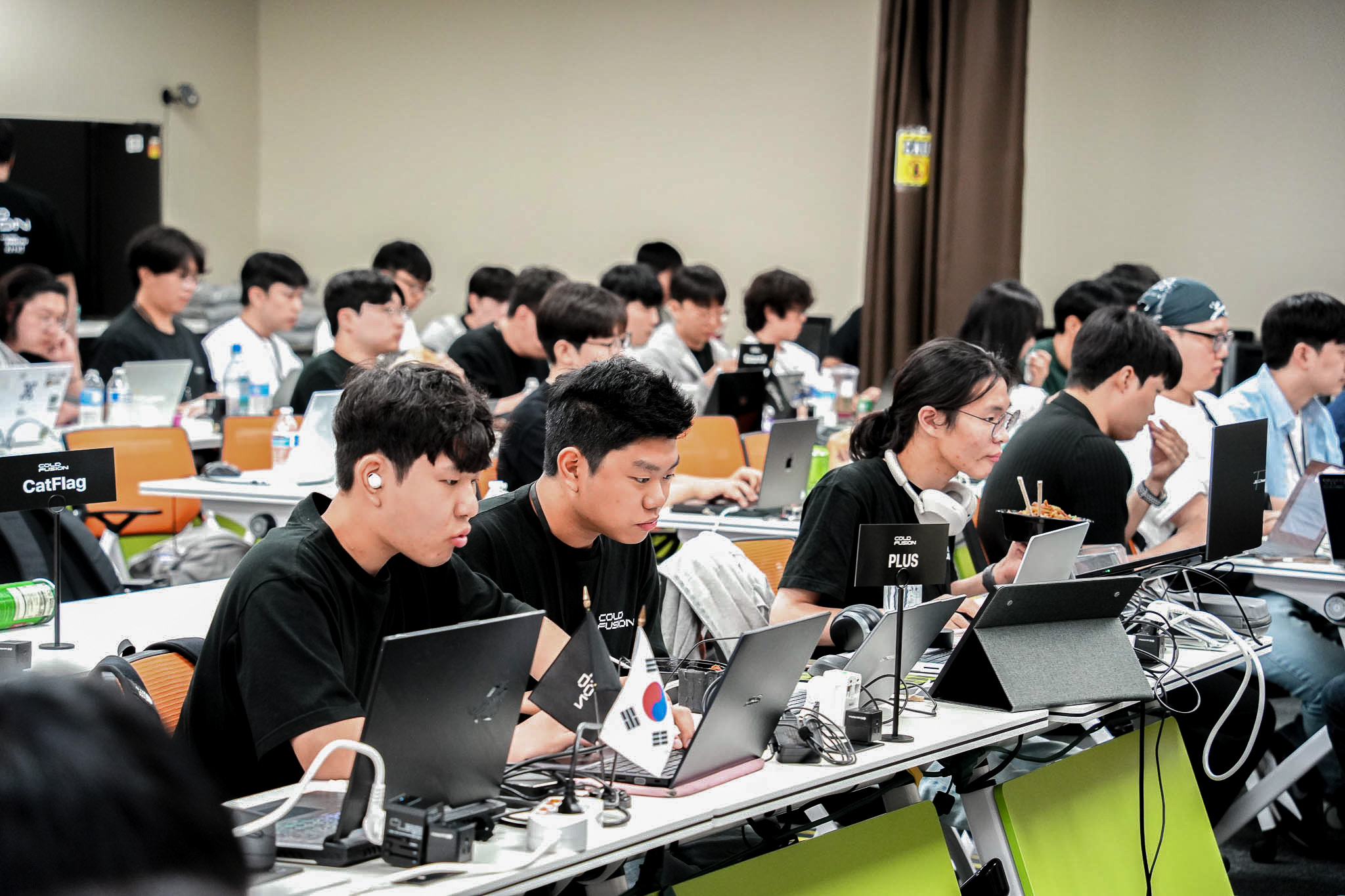 Jaewon, Gunha, and Taeyeon (as team Cold Fusion) in action during DEF CON CTF, Las Vegas.